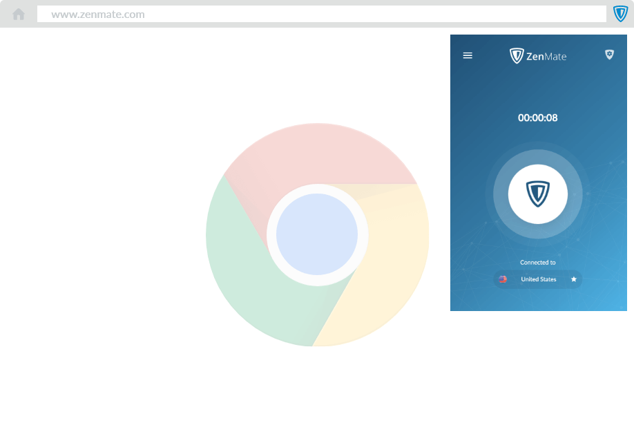 ZenMate is a Virtual Private Network software. When you run ZenMate VPN you connect to a safe server from a remote location and all your data becomes encrypted with military-grade technology. This way you can hide your IP address and stay safe and anonymous when browsing online.